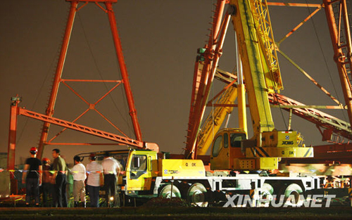 新華網上海8月19日電(記者劉丹、賈遠琨)19日17時58分,位于上海市嘉定區京滬高鐵六標十工區的一個10噸的龍門塔吊倒塌,造成4名工人死亡,2名工人受傷。