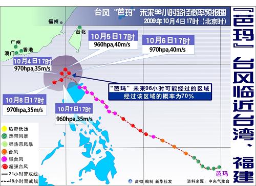 臺灣氣象局表示,受臺風及外圍環流影響,臺灣北部、東半部地區和恒春半島6日仍將有局部性暴雨,中南部山區也有局部性大雨或暴雨。盡管“芭瑪”登陸臺灣的可能性較低,但臺灣當局和各縣市政府不敢大意,高度戒備,目前正忙于進行各種抗災準備。