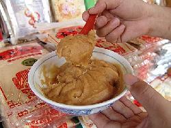 面茶是用豬油、紅蔥頭新鮮拌炒,打開袋子,光聞面粉就覺得香噴噴,加水攪拌就是黏稠的面茶,可依個人喜好控制黏稠度,也可以加油條或是碰餅(泡餅)的吃法,尤其冬天來上一碗熱騰騰的面茶,又香又暖胃,而杏仁茶則是用南杏磨制的,味道不會太甜,香醇可口。林老板說,他們是淡水老街第一個賣面茶的店,堅持面茶、杏仁粉內不加香料,保持食材的原味,對于顧客健康也有保障。(大臺灣旅游網 攝影/郭嘉琳)
