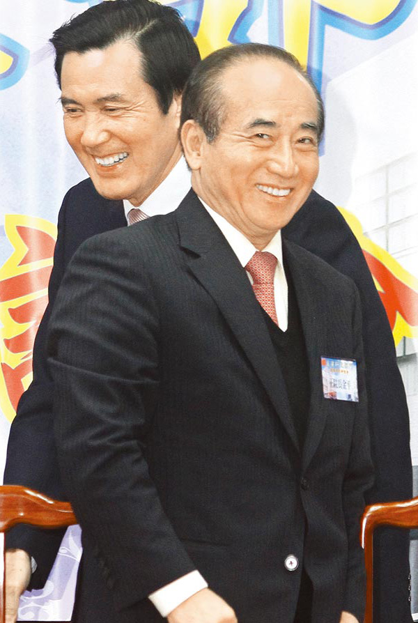 國民黨20日舉行立法行政議事運(yùn)作研討會(huì),馬英九(后)與王金平(前)互動(dòng)熱烈。王隨后在參加臺(tái)聯(lián)黨活動(dòng)時(shí)痛批國民黨人才斷層問題。(來源:臺(tái)灣《中國時(shí)報(bào)》