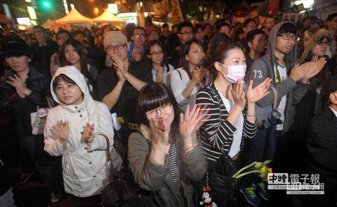 占據(jù)“立法院”議場的學(xué)生7日宣布即將在10日退場,在場外同步收看轉(zhuǎn)播的學(xué)生與民眾報(bào)以熱烈的掌聲表達(dá)支持之意。(圖片來自臺(tái)灣:《中時(shí)電子報(bào)》)