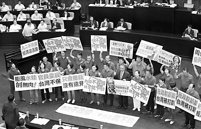 13日,國民黨在“立法院”抗議林全做施政報告。