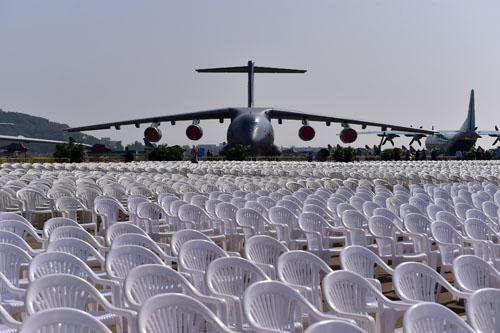 資料圖片:中國自主研發的首款大型運輸機——運-20靜臥在航展靜態展示區。第十一屆中國國際航空航天博覽會(簡稱中國航展)將于11月1日至6日在珠海舉行,目前航展各項籌備工作基本就緒靜待開幕。新華社記者梁旭攝