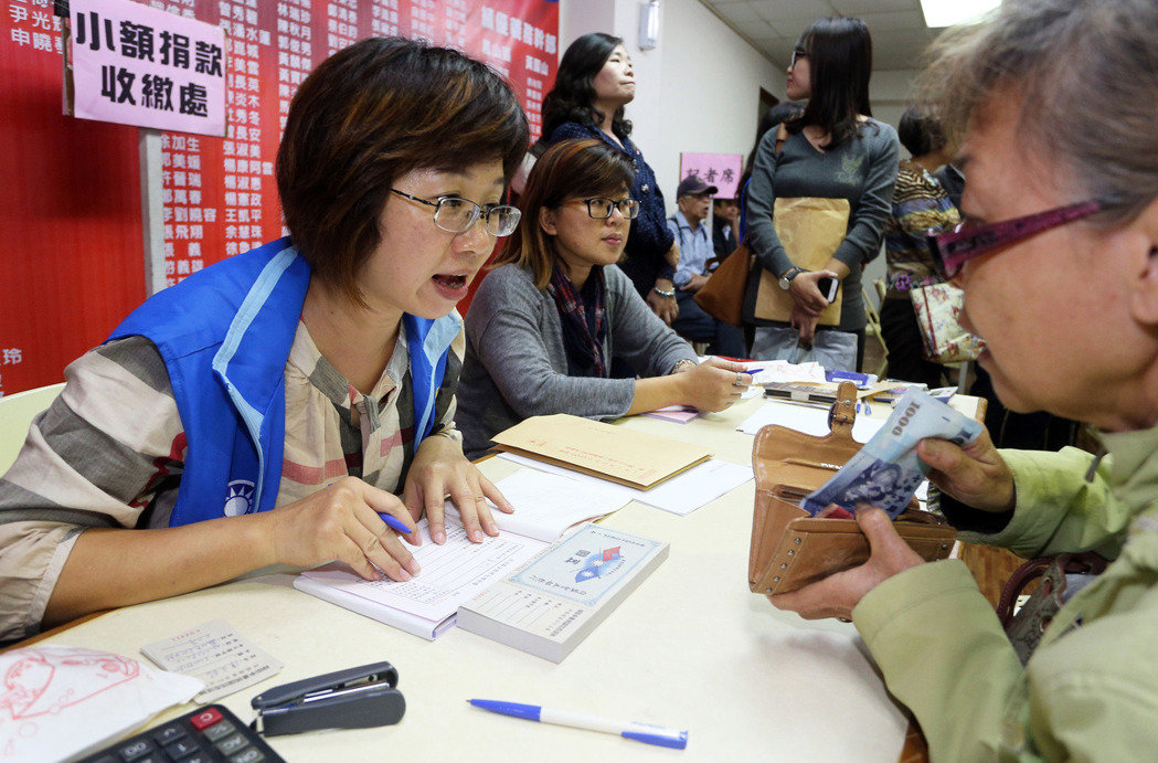 許多民眾都在現(xiàn)場(chǎng)掏出千元鈔當(dāng)場(chǎng)捐獻(xiàn)。(圖片來(lái)源:臺(tái)灣“聯(lián)合新聞網(wǎng)”)