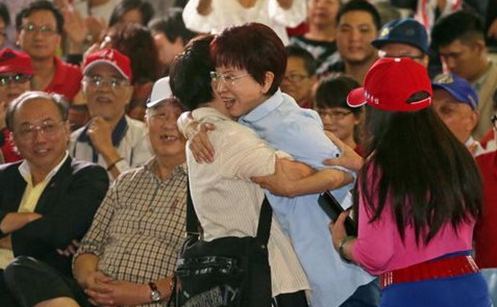 國民黨主席洪秀柱與年輕支持者熱烈互動(圖片來源:臺“中央社”)