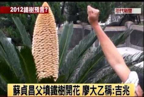 2011年4月,當時民進黨內的蘇貞昌、蔡英文角逐黨內臺灣地區領導人選舉提名,此時忽然有報道指出,蘇貞昌父親墳前的鐵樹開出了一朵約60厘米的花朵。因此有民俗學家表示,這是吉祥的征兆,蘇貞昌本人當時則回應“順天應人”。