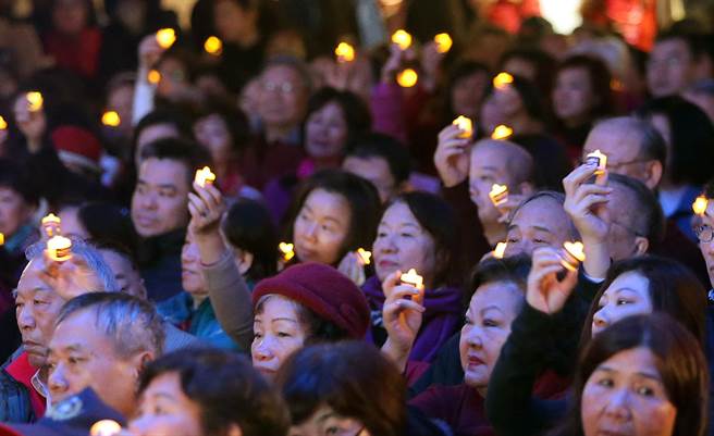 民眾點(diǎn)亮手中蠟燭緬懷蔣經(jīng)國。(圖片來源:臺(tái)灣《中時(shí)電子報(bào)》)