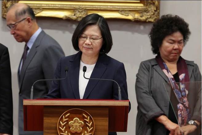 布基納法索與臺“斷交”,蔡英文(中)24日率蔡辦祕書長陳菊(右)、“國安會”祕書長李大維(左)等人召開記者會發(fā)表重要談話,3人步入蔡辦大禮堂時神色凝重。(圖片來源:臺灣《中時電子報》)