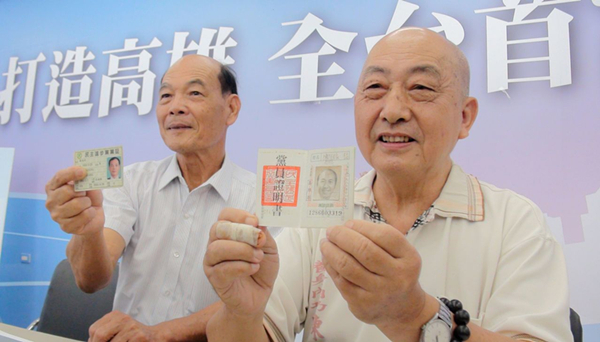 民進黨資深黨員、美濃客家籍羅兆洪(左)和參與民進黨創黨的前高雄縣議員陳振福,今天表態挺國民黨高雄市長候選人韓國瑜。(圖片來源:臺灣《聯合報》)