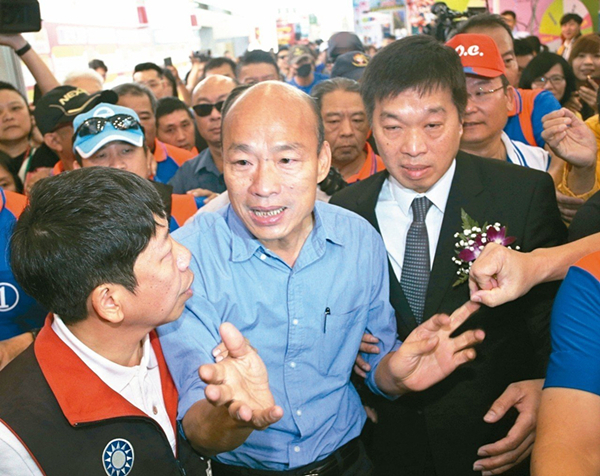 準高雄市長韓國瑜(中)昨天參加高雄旅展開幕活動,民眾爭相拍照。(圖片來源:臺灣《聯合報》)