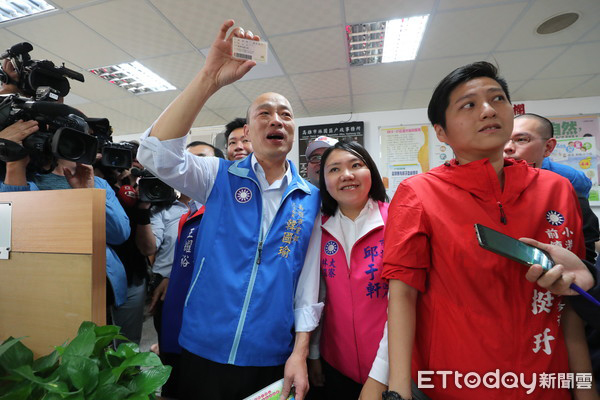 準高雄市長韓國瑜19日傍晚接受媒體訪問,表示高雄市政府團隊名單20日將正式公布,前市議員朱挺玗(圖右紅衣者)將接任高雄市海洋局長。(圖片來源:臺灣“東森新聞云”)