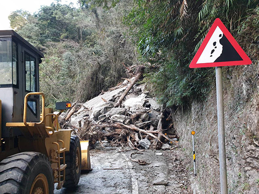 臺灣中橫公路塌方致雙向交通中斷 中午12時前或搶通