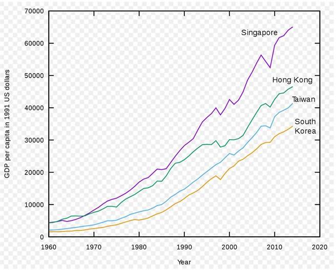 “四小龍”的GDP成長曲線圖。(圖片來自臺(tái)媒)