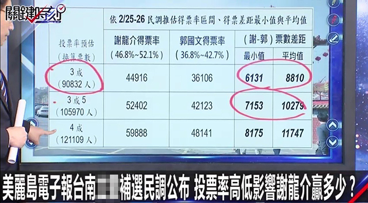 吳子嘉在政論節(jié)目上公布民調。(圖片取自臺媒)