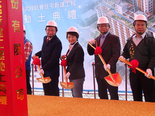 盧秀燕(左二)10日上午參加臺中市東區(qū)尚武段社會(huì)住宅動(dòng)土典禮。(圖片來源:臺灣“中時(shí)電子報(bào)”)