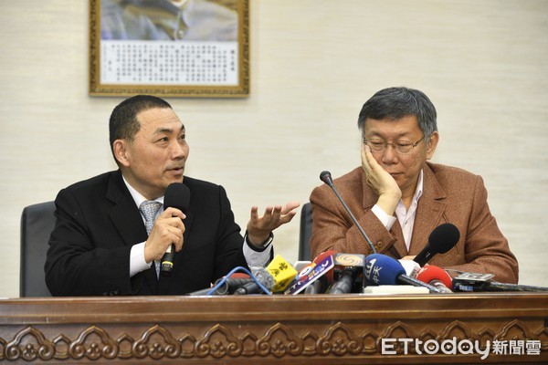 雙北市長柯文哲侯友宜會面,會后接受媒體聯訪。(圖片來源:臺灣“東森新聞云”)