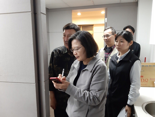 臺灣地區(qū)領(lǐng)導人蔡英文坐鎮(zhèn)新北,圖為蔡英文之前抵余天競選總部加油打氣。(圖片來源:臺灣“聯(lián)合新聞網(wǎng)”)
