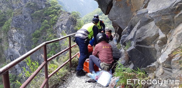 中橫綠水步道1男1女遭落石擊傷送醫(yī)。(圖片來源:臺灣“東森新聞云”)