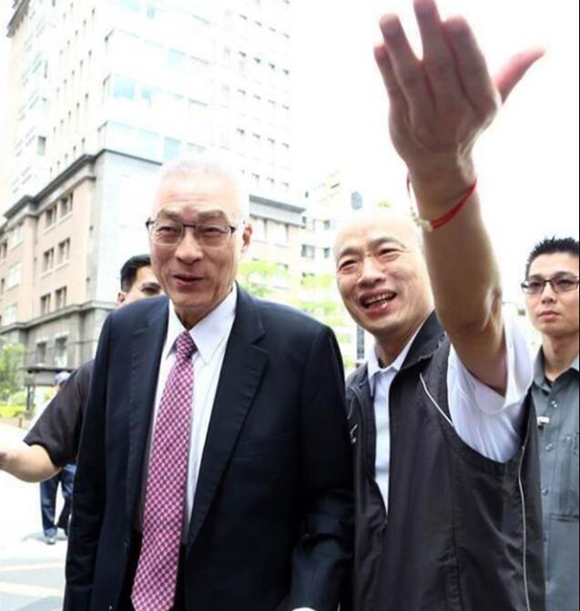 國民黨主席吳敦義(左)與贏得初選的黨內候選人韓國瑜(圖片來源:臺灣《中時電子報》)