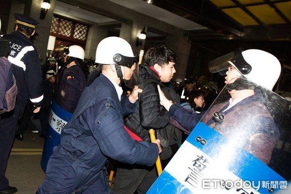 “太陽花學運”期間占領“行政院”運動爆發警民沖突。(圖片來源:臺灣“東森新聞云”)
