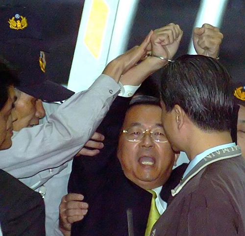 2008年11月,陳水扁被當時的“特偵組”羈押。(圖片來源:臺灣“中時電子報”)