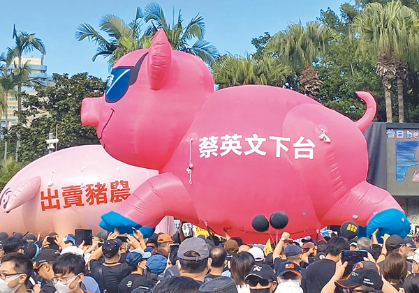 島內(nèi)各界反對含瘦肉精萊克多巴胺豬肉進(jìn)口。(圖片來源:臺灣“中時(shí)電子報(bào)”)