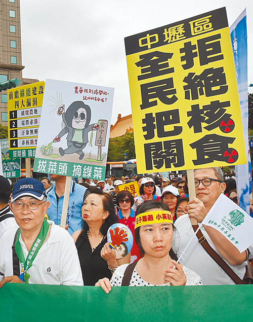 圖為2017年島內民眾走上街頭,表達拒絕核食進口。(圖片來源:臺灣“中時新聞網”)