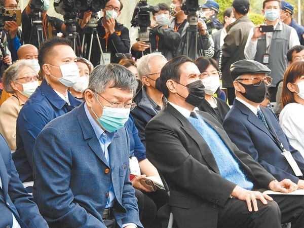 馬英九、柯文哲同臺出席“二二八”紀念活動。(圖片來源:臺灣“中時新聞網”)