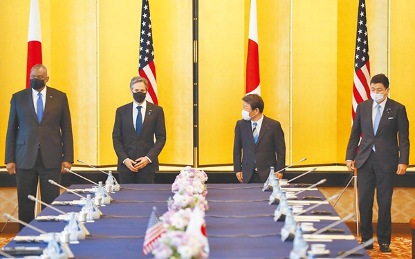 中國臺灣網3月22日訊  日本《共同社》21日報道稱,在美國拜登政府上臺后首次于16日舉行的日美防長面對面會談中,雙方對臺海可能發生的“不測事態”表達關切,還確認在臺灣突發事態之際將密切合作,宣稱大陸若武力“攻臺”、美軍馳援臺灣,日本自衛隊將考慮提供協助。日本防衛大臣岸信夫與美國國防部長奧斯汀出席了會談。