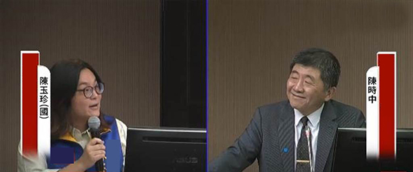 疫苗采購調閱小組成立后要求疫苗采購信息透明,日前在陳玉珍的主導下送出“衛環委員會”,交付“院會黨團”協商,但遭民進黨批評是阻礙臺灣取得疫苗。陳玉珍今天質詢陳時中時表示,應用正面態度看待疫苗采購調閱小組。