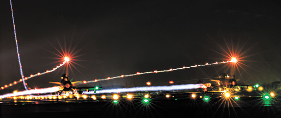 資料圖:東部戰區海軍航空兵某旅組織夜間飛行訓練。(圖片來源:國防部網)