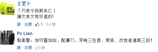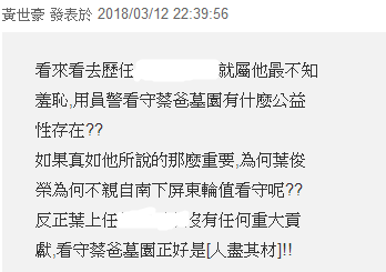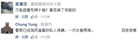 葉俊榮的一番話,也把臟水潑到了警察機關(guān)頭上。于是主管警務的“警政署署長”陳家欽也得出來。陳家欽稱,絕對沒有公器私用(一樣的套路,睜眼說瞎話,死不認賬),這樣的勤務是普遍性,沒有針對性。(為蔡父守墓是普遍性勤務?)也難怪網(wǎng)友會有這樣的回應: