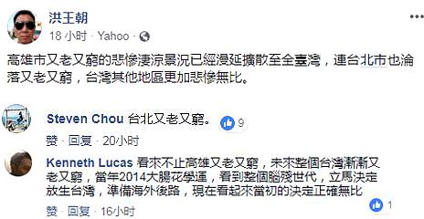 而更多的人則是哀嘆,看來不只高雄“又老又窮”,臺(tái)北也淪落至此了,“未來就是整個(gè)臺(tái)灣又老又窮了”……