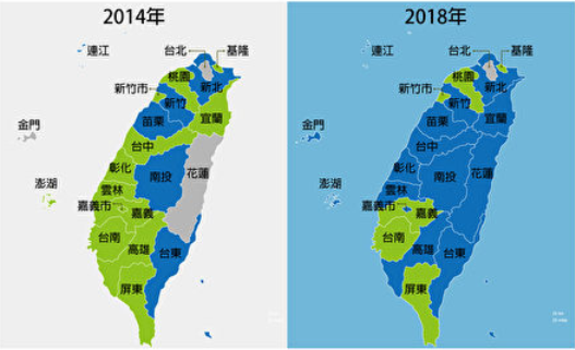 去年剛剛結(jié)束的“九合一”選舉,國民黨讓藍天重回15個縣市,一片大勝之勢(下圖,看顏色就好)。不過也有些島內(nèi)媒體人和國民黨人士示警:這次選舉是民進黨選輸了,而非國民黨選贏了。實在是民進黨當(dāng)局政策背離民意太遠,才導(dǎo)致了如此慘敗。