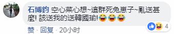 還有網友對“送黃袍”這事兒嗤之以鼻,“這不是王世堅用過的舊招數嘛”、“黃鼠狼給雞拜年”、“什么時代了,綠蛆還想做皇帝?”;也有人覺得,這“黃袍”怕是送錯對象了,“空心蔡心想:亂送什么,該送我的送韓國瑜!”;