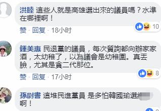 而這樣“議員”與“議會”,也讓網友不禁質疑“這些人就是高雄選出來的議員嗎?水準在哪里?”、“民進黨的議員,以為議會是幼稚園,真丟臉!”、“領納稅人的錢卻不做事”。