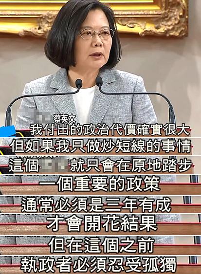 蔡英文聲稱一個(gè)重要的政策,通常必須“3年有成”才會(huì)開花結(jié)果,“但在這之前,執(zhí)政者必須忍受孤獨(dú)”;她接著“訴苦”道,很多朋友認(rèn)為她很傻,做愈多,被罵愈兇,但她要告訴三年來感到失望的朋友,多一點(diǎn)耐心,就會(huì)看見當(dāng)局“做的事比想象多很多”。同時(shí),她還不忘對(duì)三年來不斷唱衰臺(tái)灣的人喊話,“你們不會(huì)得逞”……