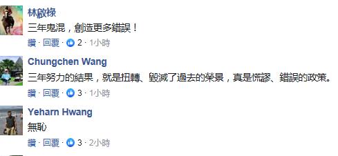 國民黨民代王育敏更用20個(gè)字,對(duì)蔡英文當(dāng)局執(zhí)政三年來的表現(xiàn)做了總結(jié):