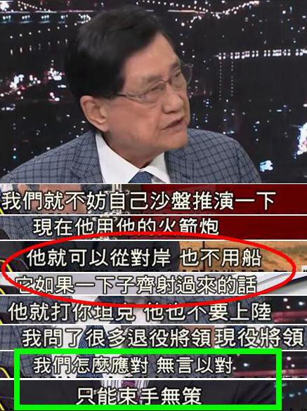 臺(tái)灣時(shí)事評(píng)論員葉耀鵬更大膽的為兩岸“武統(tǒng)戰(zhàn)爭(zhēng)”做了沙盤推演,遺憾的是,他的問題令臺(tái)軍現(xiàn)役及退役將領(lǐng)——無言以對(duì)!