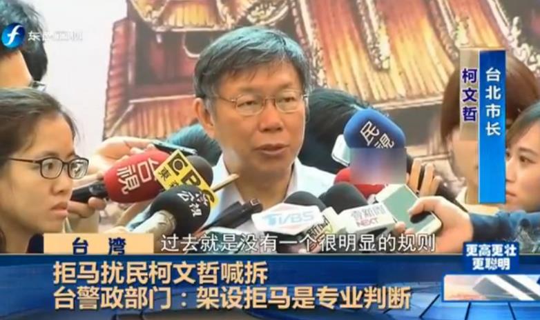 有“立委”助理也不滿被拒馬包圍,撥打市民專線向臺北市政府檢舉。據(jù)臺灣“東森新聞云”報道,柯文哲繼日前連續(xù)拆除博愛特區(qū)周邊的“政治路霸”后,6日又表示已準備和“立法院”、保六總隊協(xié)調(diào)處理“立法院”前方的拒馬,遭質(zhì)疑是找民進黨當局麻煩。據(jù)臺灣《中時電子報》報道,柯文哲受訪時提到,拒馬布置缺乏聯(lián)合統(tǒng)一指揮系統(tǒng),導致市府與臺當局都沒有解決問題,近期將拜會“警政署’訂出規(guī)范,該拆就拆。
