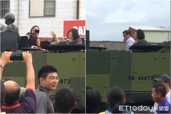 蔡英文勘災(zāi)神似謝票:坐裝甲車(chē)、微笑向?yàn)?zāi)民揮手致意