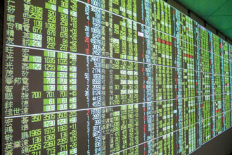 受到道瓊指數狂跌引發全球股災,臺北股市早盤狂瀉470點,熒幕顯示版整片綠油油,股民哀嚎。圖片來源:臺灣《聯合晚報》