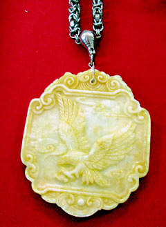 臺灣警方掃蕩四海幫海云堂,搜出一塊雕有飛鷹圖案的玉佩,據稱可以保命,如同古代“免死金牌”。來源:臺灣《聯合報》
