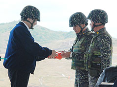 據“中央社”報道,馬英九今天到三軍聯訓基地視導聯勇97-11號操演。今天一共有1686名官兵參加演練,這次的操演是以“領土”防衛作戰為場景。
