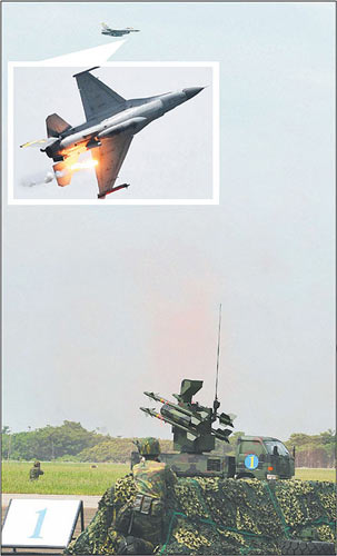 資料圖:臺灣空軍以車載劍一防空導彈與20機炮,追瞄F-16戰機。
