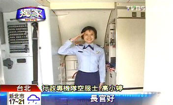 在行政專機隊上,笑容親切的“空服士”用甜美的笑容行“舉手禮”,她們服務的對象就是臺灣的高級行政首長,或是臺軍的各級長官。
