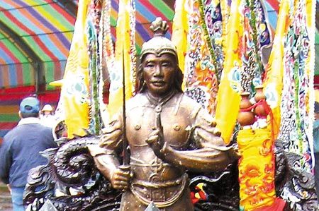 新竹縣寶山鄉九龍宮供奉穿古代軍裝的蔣介石,信徒還不少。圖片來源:臺灣中國時報 陳權欣 攝