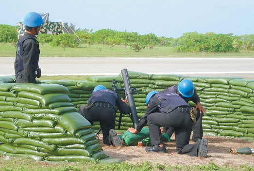 臺(tái)海巡部隊(duì)將于9月在南沙太平島進(jìn)行火炮射擊演習(xí),太平島臺(tái)軍官兵近日都在進(jìn)行射擊預(yù)習(xí),圖為臺(tái)軍官兵進(jìn)行81迫炮射擊預(yù)習(xí)狀況。來(lái)源:臺(tái)灣《聯(lián)合晚報(bào)》