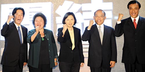 左起依次為賴清德、陳菊、蔡英文、蘇貞昌、蘇嘉全。圖片來源:臺灣《聯合報》