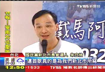 中國臺灣網8月28日消息 據臺灣TVBS電視臺報道,國民黨新北市參選人朱立倫,今天公布競選歌曲,歌曲為22年前歌手張雨生創作的《沒有不可能的事》;而民進黨新北市參選人蔡英文,則是選擇卡通“小英的故事”做主題曲。